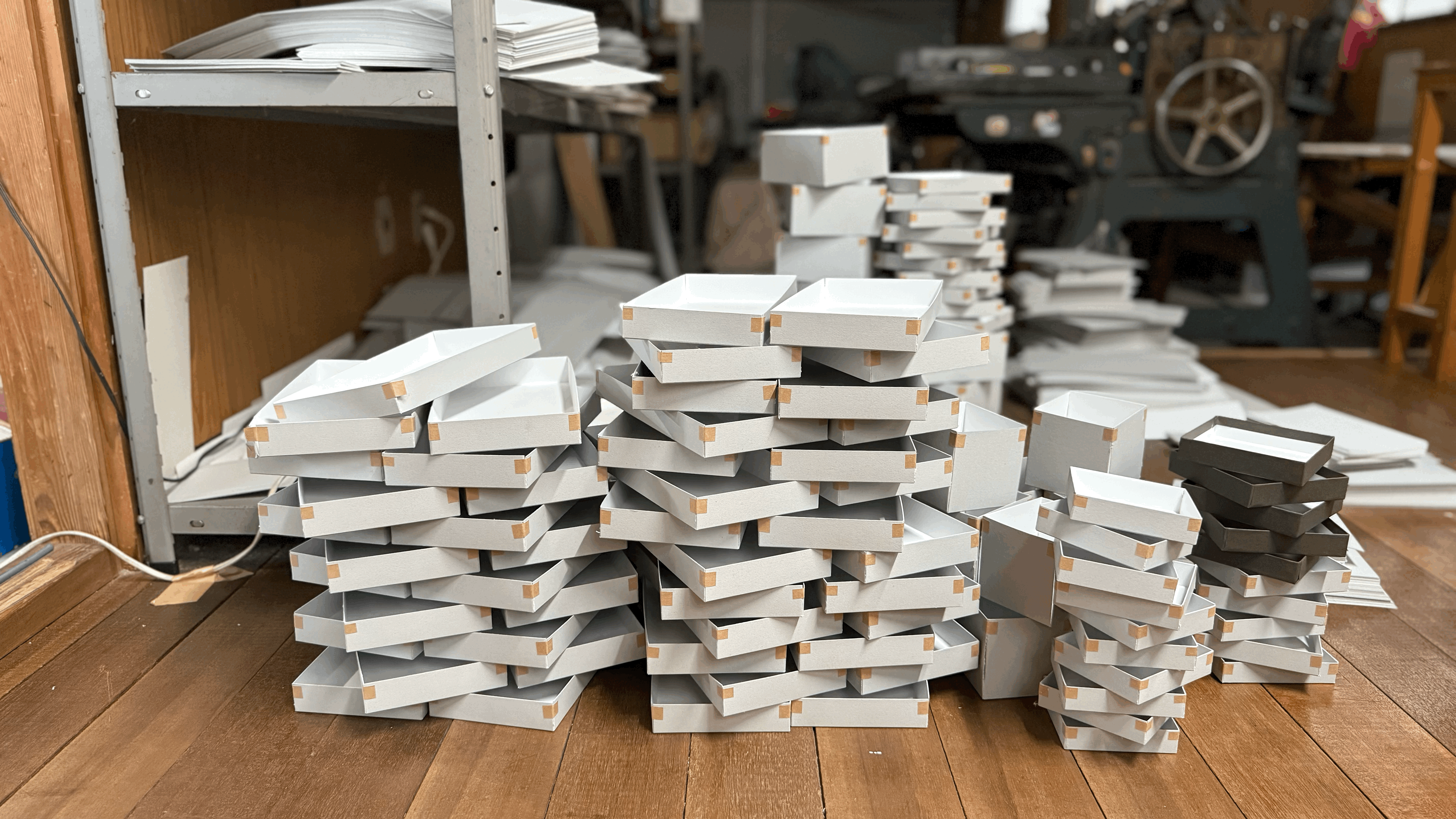 厚紙に和紙や洋紙を貼り合わせる、丈夫でしっかりとした見栄えも良い箱。長谷部紙器ではご要望が最も多い箱です。